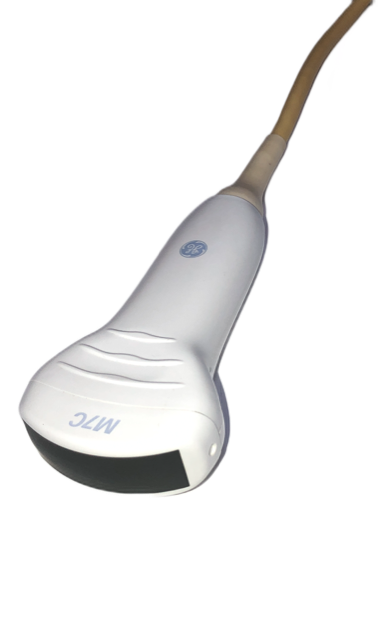 The GE M7C Curved Array transducer has a frequency range of 2.5 MHz - 8.0 MHz and supports the following applications: Obstetrics, Gynaecology, Pediatrics . The GE M7C transducer is compatible with: GE Logiq 7; GE Logiq 9; GE Vivid 7; GE Logiq S6 ultrasound systems.